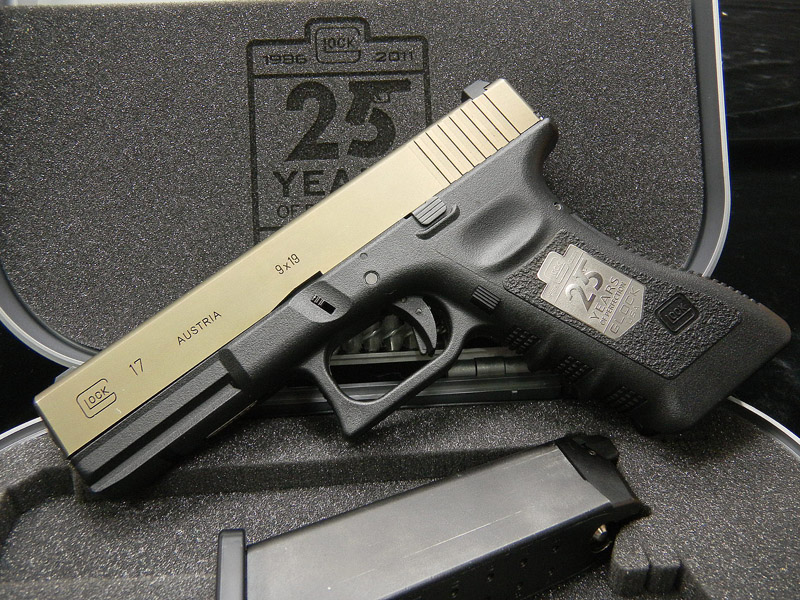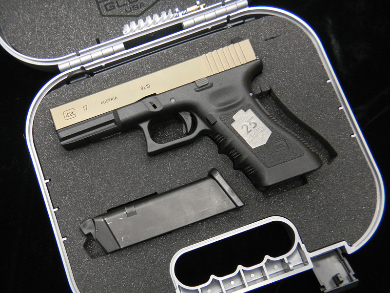 GLOCK,這款可說是9mm手槍中的經典代表作,絕對是人手一把的好槍,但是要最經典的就是25週年紀念款了!