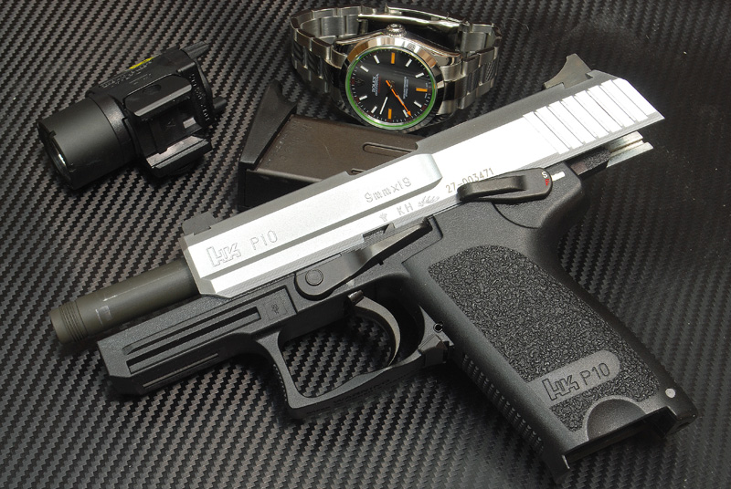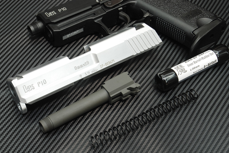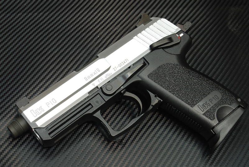 最近沒啥新玩具出現,只好回鍋繼續找老玩具玩,想到KSC P10一直還沒買過,本來以為很好找,沒想到居然停產了.....現在是一槍難求!大概現在市售的USP系列下槍身全部都慘操U記毒手,唯一還沒被刻上一堆白字的也只有P10這個版本了。