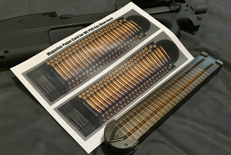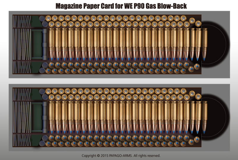 WE P90上市以來可說是讓衝鋒槍市場耳目一新,性能跟射擊感受都很棒,雖然在外觀上沒有到MARUI電動槍那麼像真,但是只要將這張彈匣紙卡裝飾上去,就可加分不少囉!這份紙卡為PAC特別設計,免費提供給各位玩家下載使用,請勿作為商業用途,謝謝合作!