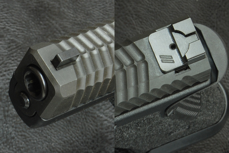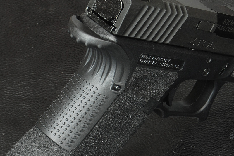 ZEV特殊的止滑紋設計,看來雖然過於前衛,但實際操作起來的感覺相當順手。比照真槍滑套的角度看來,外型如出一轍!