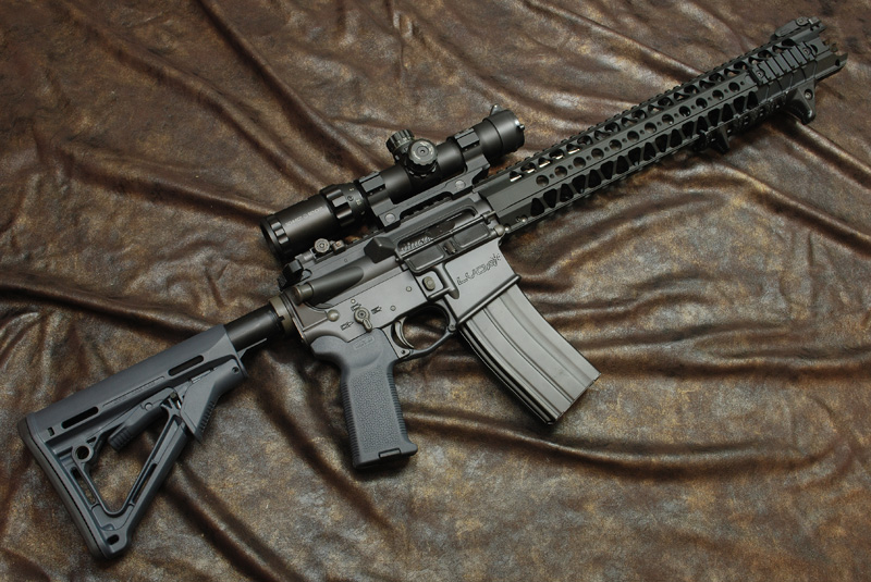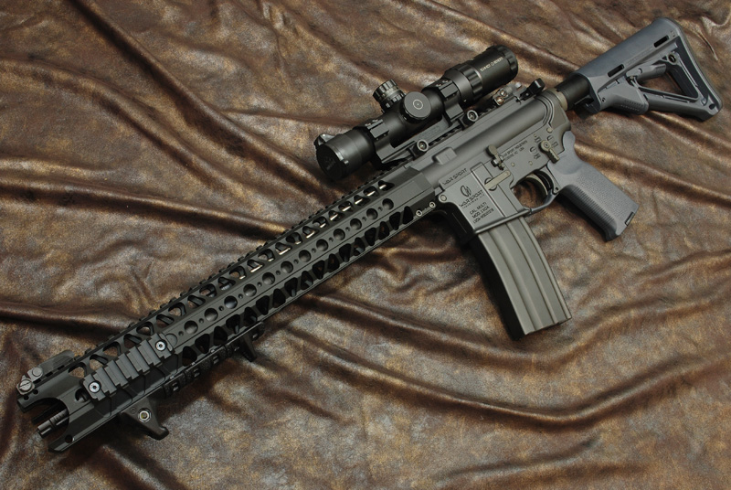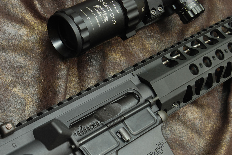 裝配完成,搭配1-4X瞄具就不會顯得前段太長,裝上後重量分配的也恰到好處!