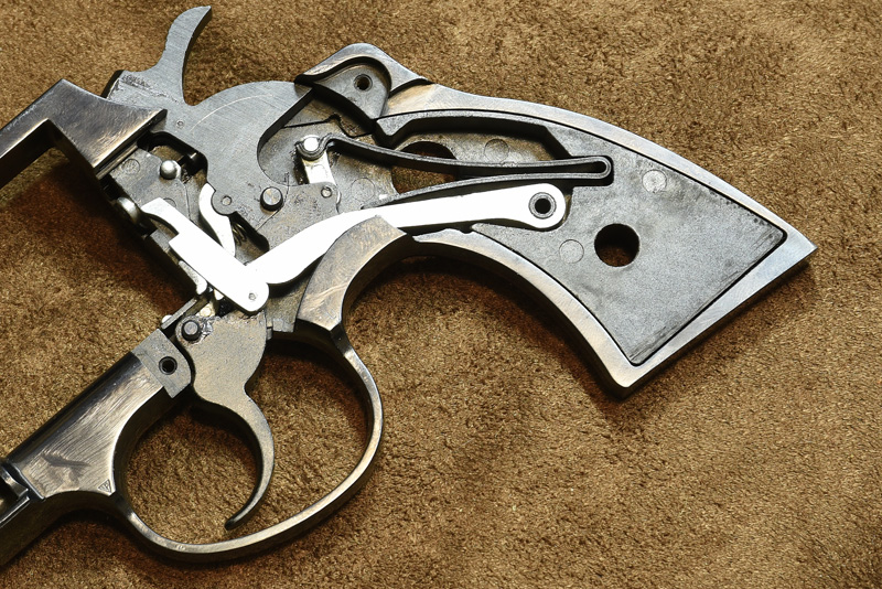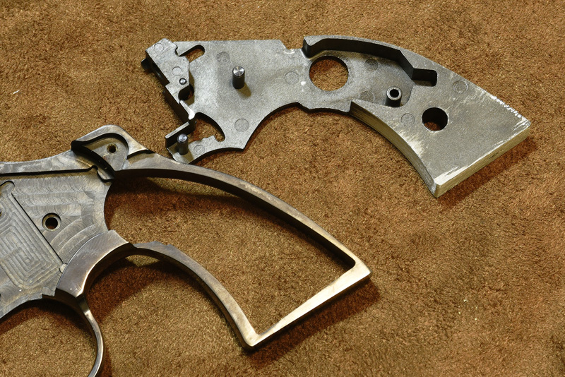 由於套件採Colt D Frame Short Butt設定,必須將原廠亞鉛座鋸掉底部,組裝就數這部份加工難度較高。