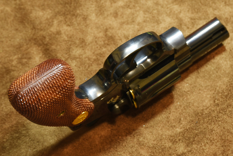 左輪手槍是被許多玩家遺忘的經典款,與其說遺忘不如說是沒有適合原廠本體出現,要尺寸像真的沒彈殼,有彈殼的尺寸卻比真槍大上一號,更別提要安裝真品木柄了;雖然市面上還是沒有功能與外型完美的左輪槍款,但是像真派玩家心目中的首選依然是日本TANAKA廠!這款由Robinhood推出的COLT DETECTIVE-SPECIAL套件,本體為全鋼CNC製品,表面採鏡面發藍,不論重量跟質感都是目前金字塔頂端客層的首選!